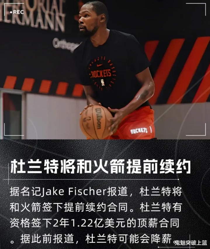 据悉,杜兰特自今年7月7日起就有资格跟休斯敦火箭签下一份为期2年价值1.22亿美元的顶薪提前续约合同。而若等到六个月后的2026年1月,届时杜兰特将可签2年1.24亿美元的顶薪提前续约合同。