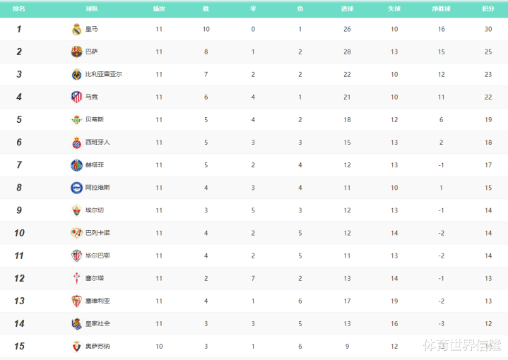 2、西甲:皇马突出,巴萨下滑