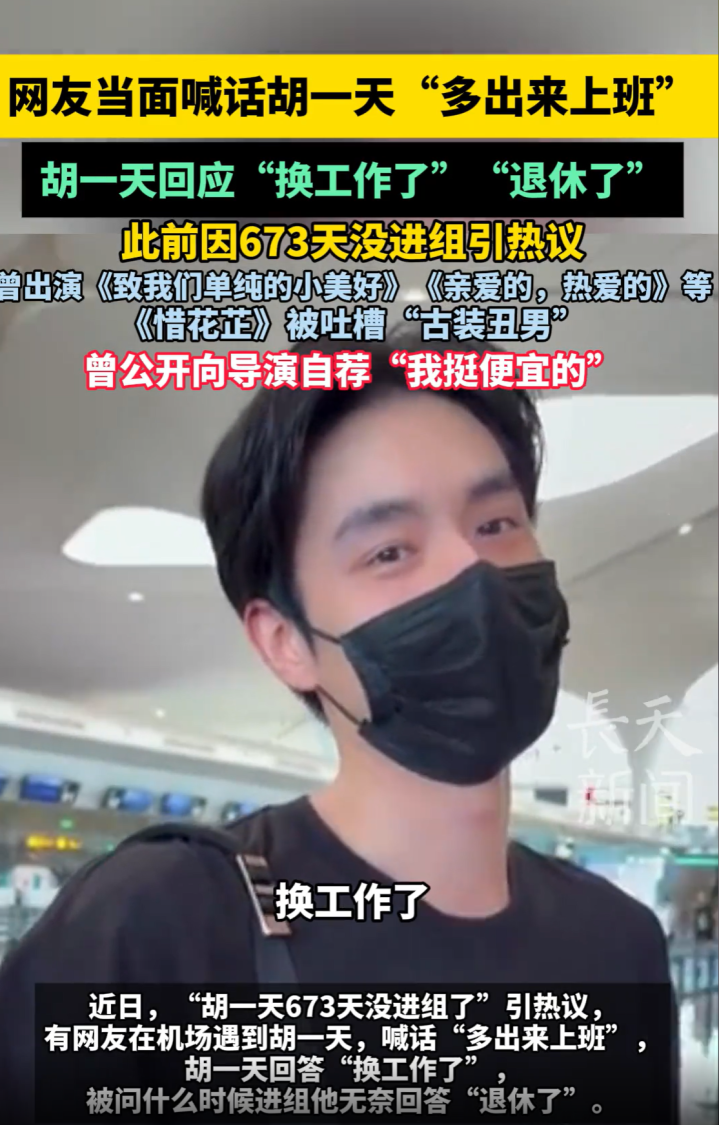 比如最近刚因“胡一天673天没进组了”而冲上热搜的胡一天。
