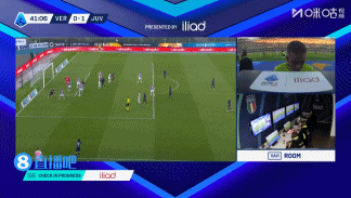 在本场比赛第43分钟,尤文球员若昂-马里奥在禁区内手球,主裁判拉普阿诺第一时间没有吹罚,但VAR随即介入,主裁判拉普阿诺到场边观看视频回放后,改判点球,维罗纳依靠这个点球将比分扳平。