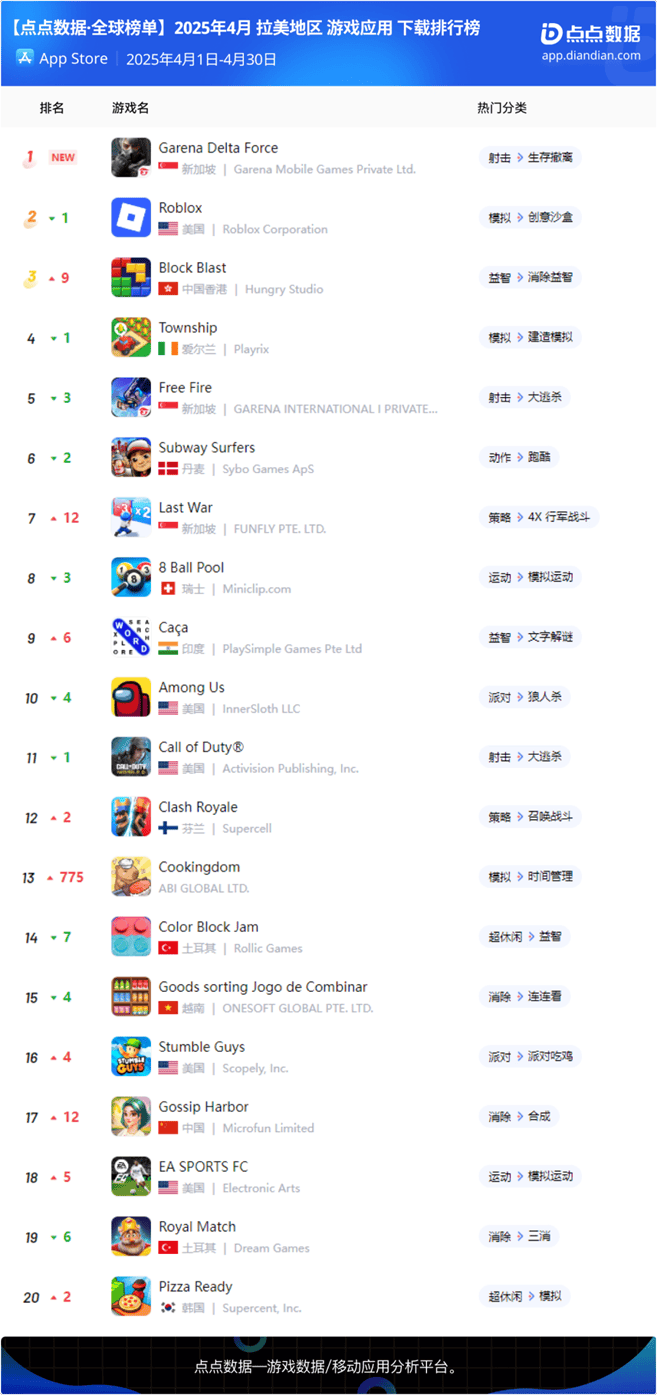 整体来看,拉美市场目前正处于复苏爬升的阶段。越来越多的中国公司不再把拉美视为“全球发行中的一个语言选项”,而是真正组建本地团队、做深度定制化运营,比如冰川网络、莉莉丝、IGG早有布局。另外,像《block blast》《GossipHarbor》《三角洲行动》等产品近期在拉美榜单上的成功,也都印证了这条路是可行的。