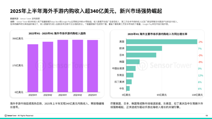 据SensorTower数据显示,2025上半年传统出海市场存量状态加剧,中东、拉美、东南亚等新兴市场仍然在崛起,从这里,厂商或许能找到更多的增量机会。