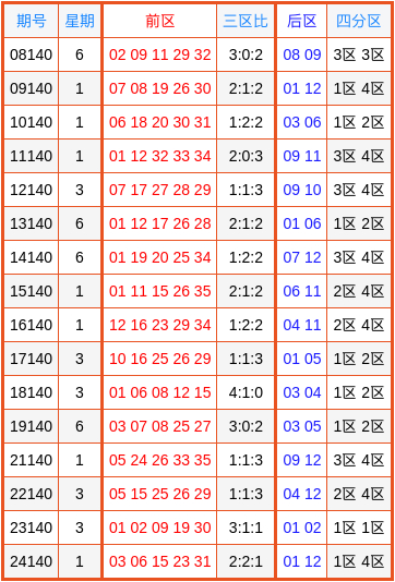 二区分析【13-24】:在历年大乐透第140期同期奖号中,该区开出率为21.25%,表现十分冷淡。本期预计该区出号2枚,推荐出号关注:14、20。